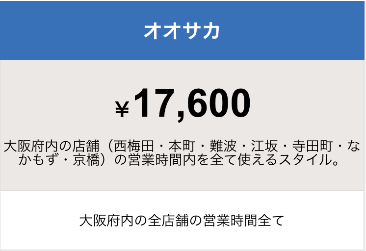 会員スタイル(税込月額料金)一覧※こちらは寺田町店の料金ページです